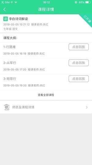2、 视频回放:课程结束之后,想回顾之前所学知识,点击视频即可回看课程,及时查缺补漏。