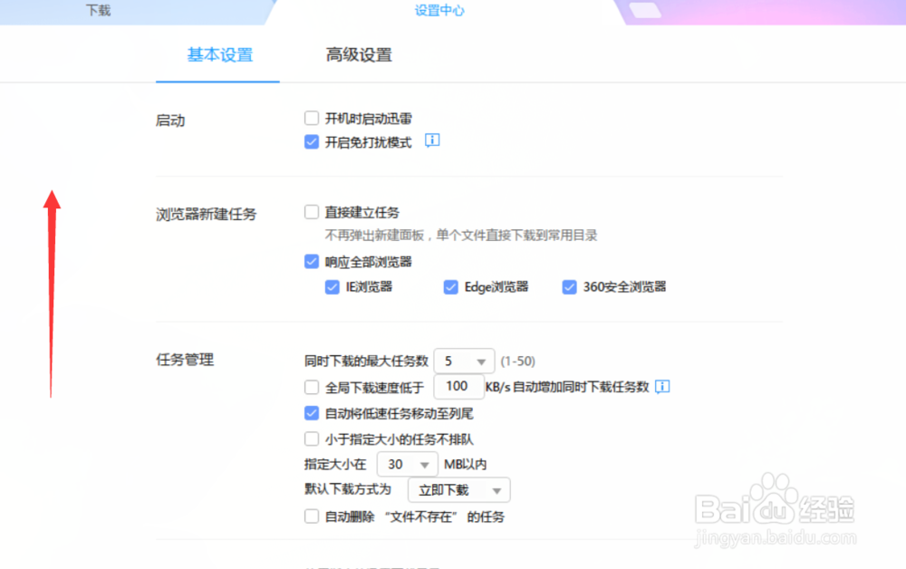 进入设置中心后,还不能看到下载模式的选项,需要我们往上面滑动,如下图示