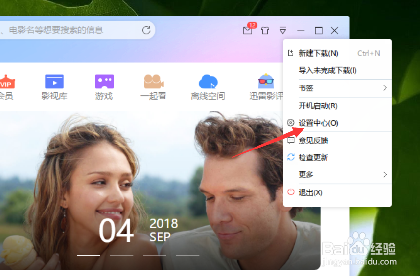 我们在弹出的下拉列表中,点击进入设置中心,如下图所示