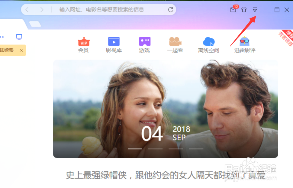 进入迅雷后,我们点击右上角的倒三角符号,如下图所示