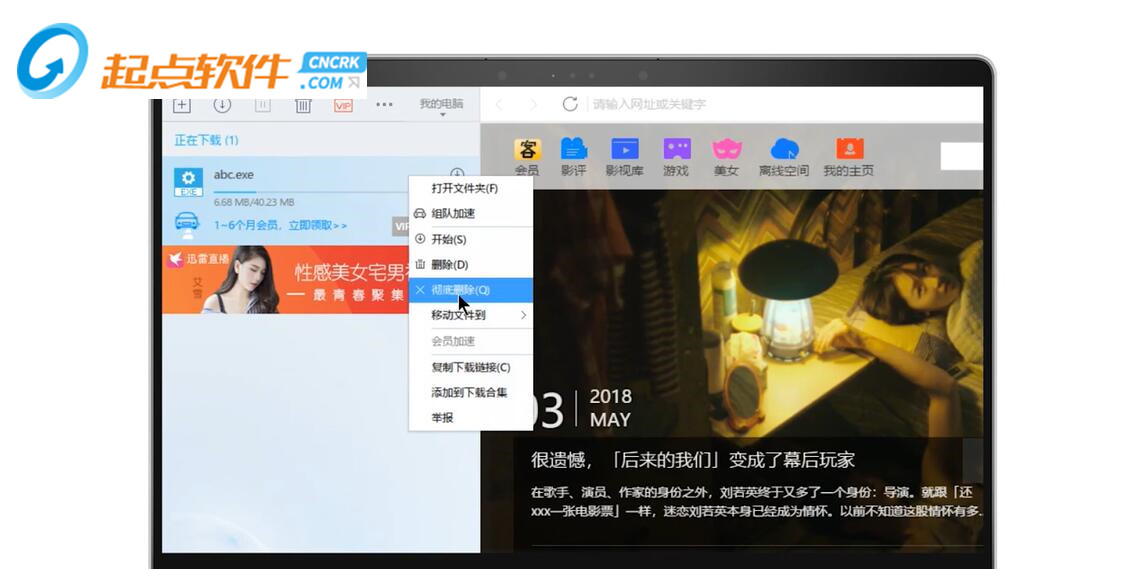 迅雷资源被举报无法下载,无法加速怎么办?首先右键点击正在下载的进程,在弹出的菜单中选择彻底删除。