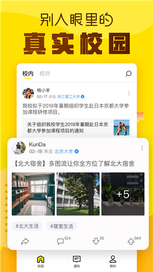 hi校友app是一款专为学校打造的校园资讯社区,hi校友软件中用户可以浏览任意的校园社区,了解最新的校园资讯以及校园趣事,同时还可以加入兴趣社团,与社团成员一起聊八卦、看新闻、互相吐槽等。