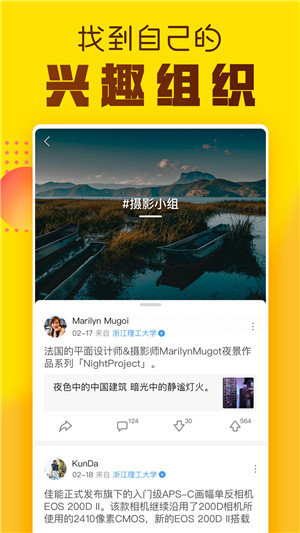 3、找到自己的兴趣组织:从学习吐槽到兴趣爱好,都可以进入话题尽情互动聊天,好看的脸孔和有趣的灵魂在这里等你勾搭,还可能遇到你的sou、lmate。什么,没发现你的学校和你喜欢的话题?那就来自己创建一个吧,K、O、别人家的大学!
