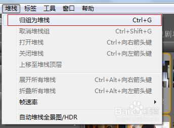 3、一组堆栈,会在图片上以数字显示本组有几张图,点击数字则可展开堆栈,再次点击则收起组。当建立了多个堆栈时,也可以通过堆栈菜单命令进行展开所有堆栈,折叠所有堆栈的操作。