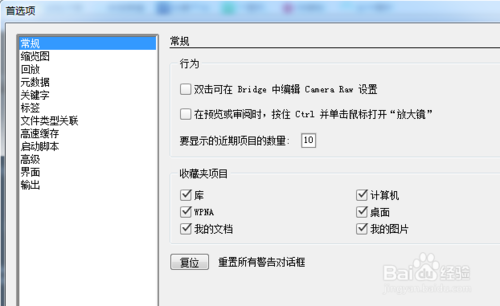 3、我们可以在这里设置他的常规首选项,并设置他的收藏夹项目。