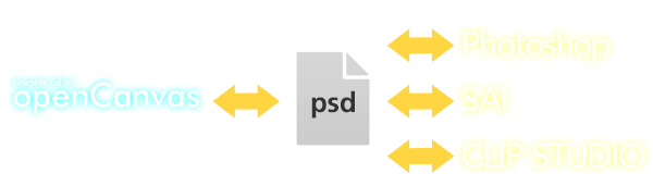 对应以PSD(Photoshop)形式保存。几乎完封不动地将描绘图案的图层构造、合成结果的状态直接保存之Adobe Photoshop、SAI、CLIP STUDIO PAINT等应用程序也可开启。 (※)。
