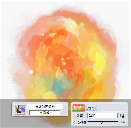 opencanvas怎么涂鸦?(1)新建文档。主要工具为“快速油画颜料”,使用橙、红、蓝、柠黄等颜色涂画,“快速油画颜料”带有轻微的混色属性,可以画出轻度的混色效果。之后使用“涂抹”对画面四周以及中间个别部分进行涂抹,使其过渡柔和。适当应用“扩散”工具,制造一种毛刺状的渗开效果。