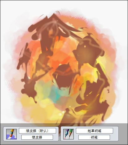 (3)新建图层(这应该是第三个图层了),用“起草钢笔”(此工具主要特点是轮廓较硬且没有混色效果)随机绘制,之后用“橡皮擦”随机擦除部分图案。