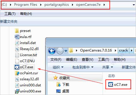 openCanvas7破解安装教程1、下载解压,得到opencanvas7原程序和破解文件;