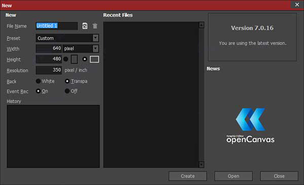 绘图软件openCanvas是针对从插画初学者到高级用户,可广泛对应windows的专用绘图软件。类似模拟方式笔触的笔,功能性强且友好的界面。除了相当强劲的基本功能外,openCanvas还搭载了独立的[事件功能],可以回放绘图顺序以及在任何位置追记。