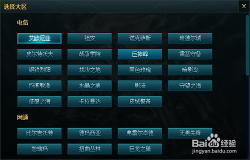 用户点击了大区选择按钮之后,就出弹出一个大区的菜单,用户可以在这个大区菜单中点击自己所玩的区。