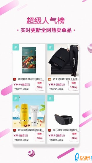优惠券:限量内部优惠券,大额优惠券领券即减!超高返:专业买手选款,可达50%!
