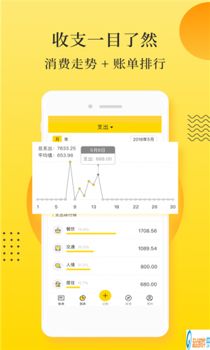 图表统计:查看收支趋势图和收支排行榜,消费数据一目了然