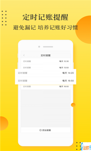 记账提醒:可自定义提醒时间,坚持记账不漏帐