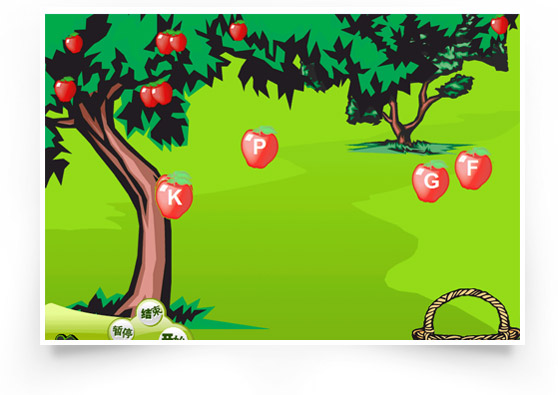 该游戏模式跟鼠的故事一样,都是为了测试大家对26字母键熟悉度。只不过这个模式的玩法是需要你在指定时间内把即将落地的苹果接住,敲击对应的字母键即可。