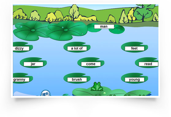 小青蛙想过河?~怎么办?快速敲出指定的单词帮助小青蛙过河吧!切记一定要在指定的时间内输对单词,一单单词消失小青蛙也会跌入河中,就只能从头再来了。