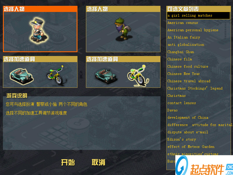 1、首先选择你扮演的角色,警察或者小偷,然后在右边选择打字文章