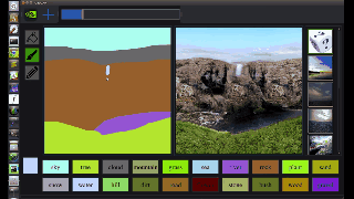 艺术家可以使用画笔和油漆桶工具来设计他们自己的景观,如河流,岩石和云。样式转换算法允许创作者应用滤镜 - 将日间场景更改为日落,或将照片级逼真的图像更改为绘画。用户甚至可以将自己的过滤器上传到他们的杰作上,或上传自定义分割地图和风景图像作为其艺术作品的基础