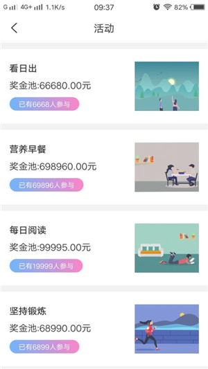 1、丰富挑战活动实时推出,参加一项活动就能培养一种好习惯。2、一键打卡签到展示参与记录,所有人都能分享自己的生活。