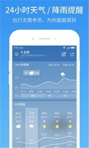 1、【强大天气推送】超长15天天气预报,计划出行运筹帷幄。24小时预报逐小时天气预报,天晴下雨早知道。各气象台官方预警第一时间发布,预警涵盖市县区