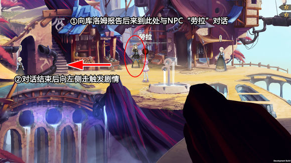 要点:诺瓦露和布兰入队、向库洛姆报告后,在拉士贴森城镇最右与NPC劳拉对话后向左走触发剧情(带CG)。