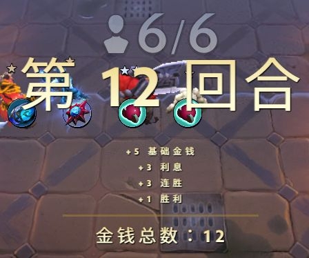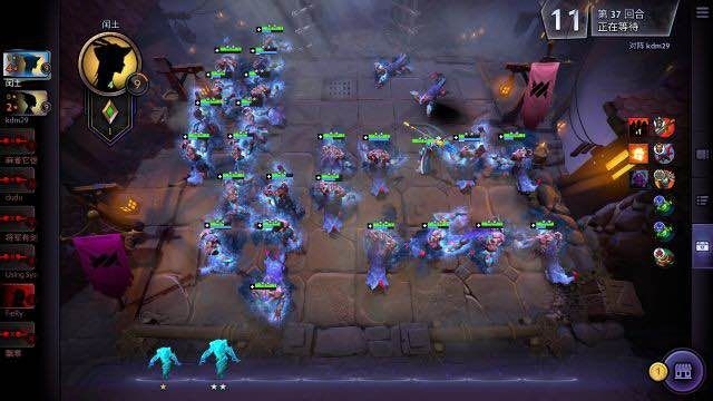 等待阶段:当你的战斗或者战利品选择结束后,进入等待阶段,等待其他玩家的本回合阶段结束。此阶段你的所有棋子均恢复最初始的站位,你可以调整上场人数,阵型,和准备阶段其实没有操作上的差别,具体的差别同样在下面结算时间点中谈。等待阶段结束后,即进入下一个回合的准备阶段。