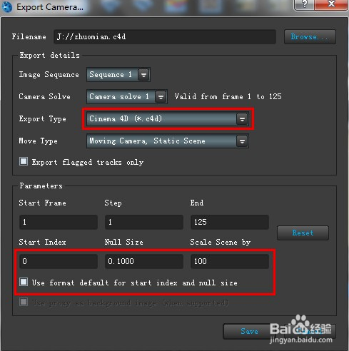 Boujou里设置好坐标轴向后(Boujou和C4D、AE的轴向是一样的Y轴向上)