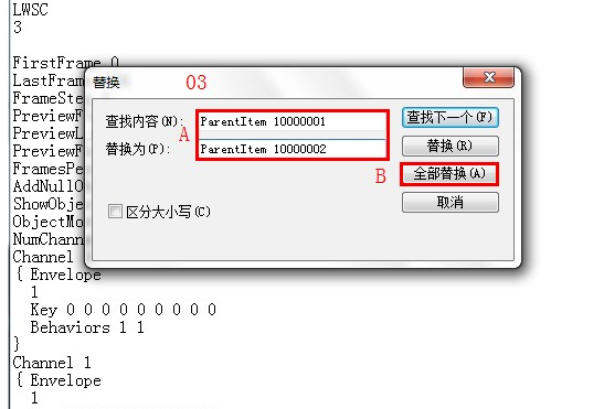 以同样的方法把【Key -0.00000】替换为【Key 0.00000】、【ParentItem 10000001】替换为【ParentItem 10000002】。