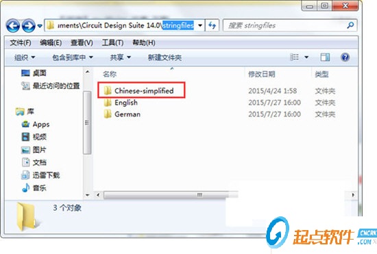 3、如需汉化,可以将Multisim14汉化包“Chinese-simplified”复制到软件目录下的stringfiles文件夹,默认目录为【C:\Program Files (x86)\National Instruments\Circuit Design Suite\stringfiles】