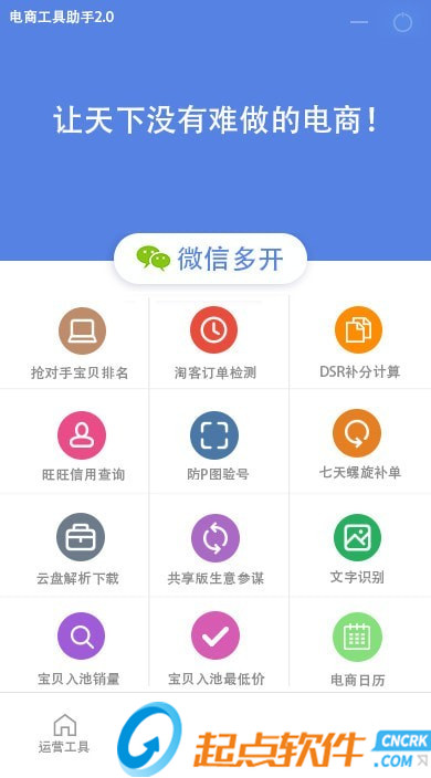 电商工具助手是一款专业的电商辅助软件。电商工具助手功能强大,拥有运营工具、设计工具、绩效工具、辅助工具这四大类实用工具集合,而且完全免费。有需要的用户欢迎在本站下载。