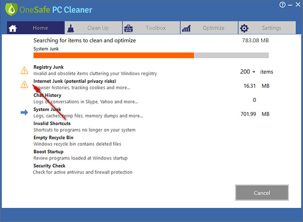【OneSafe PC Cleaner软件功能】