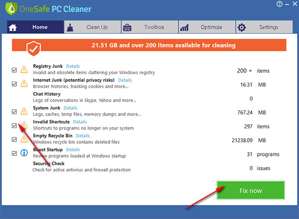 该软件会查找并删除随着时间的推移累积在PC上的垃圾文件和快捷方式,占用硬盘空间。该软件搜索并删除卸载的程序遗留的无效快捷方式和文件。OneSafe PC Cleaner还可以识别和删除注册表中不必要的条目。