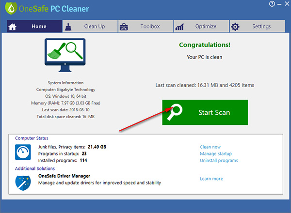 【OneSafe PC Cleaner使用方法】