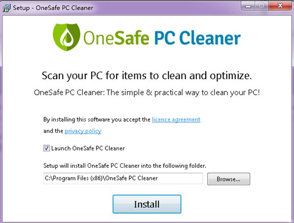 1、启动安装程序,设置地址C:\Program Files (x86)\OneSafe PC Cleaner,点击install