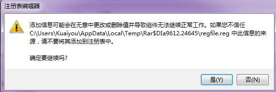 4、双击regfile.reg添加软件的注册表,点击是