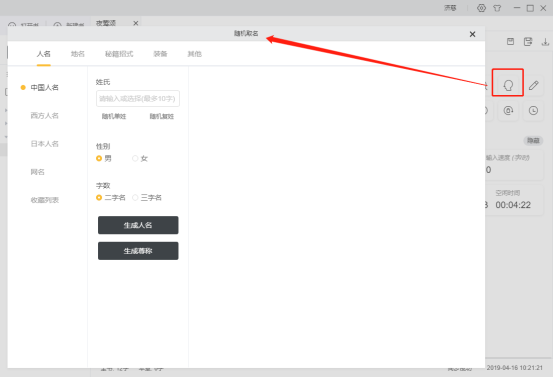 随机生成各种符合要求的人名、地名、功法、秘籍等等,为使用者提供快速有效的便捷服务。