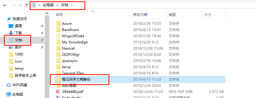A:橙瓜码字不仅有线上定时同步功能,还有本地存储功能;以确保您的稿件不会丢失。本地存储的文件一般保存在:Windows系统:C盘当前用户的文档下,文件名称为”橙瓜码字文稿备份”,请勿随便移动该文件夹里的东西,见下图: