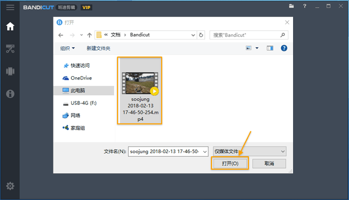 2. 然后导入你要截取的原视频,点击 “打开” 文件。