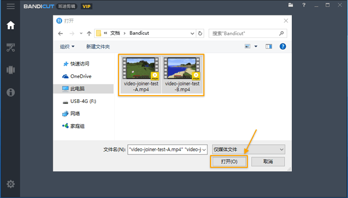 2. 然后导入你要拼接的原视频,点击 “打开” 文件。