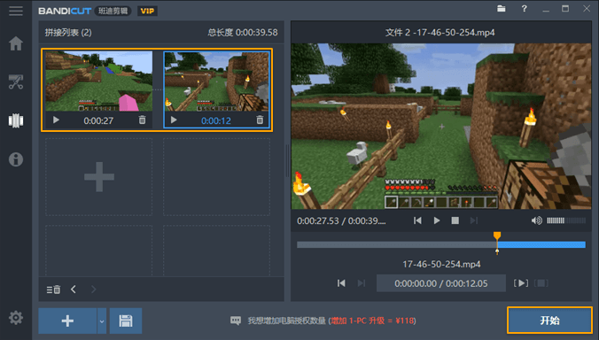 3. 确认拼接的视频顺序,然后点击 “开始” 进入下一步。