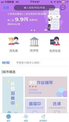 城市精选,每日推送,随心挑选;名师在线,优质课程,高效学习;