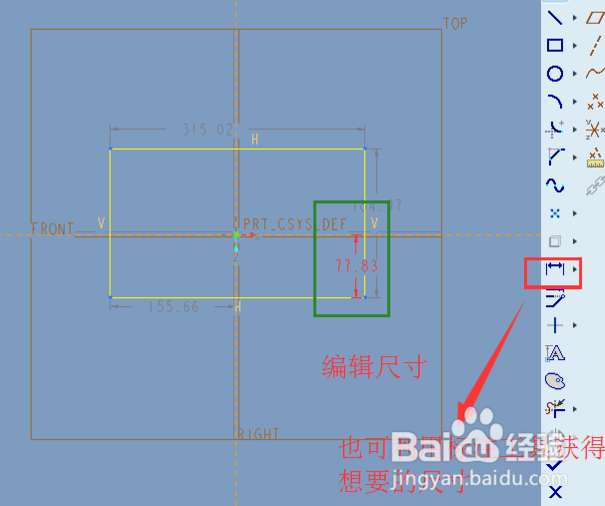 在这里绘制想要的图形。绘制时可以先随便画出形状,然后按鼠标中间确认,然后出现灰色的尺寸标注,双击尺寸线,即可修改其尺寸。对着尺寸线长按鼠标右键,弹出对话框,选择【强s】,可以防止尺寸被无意中更改。