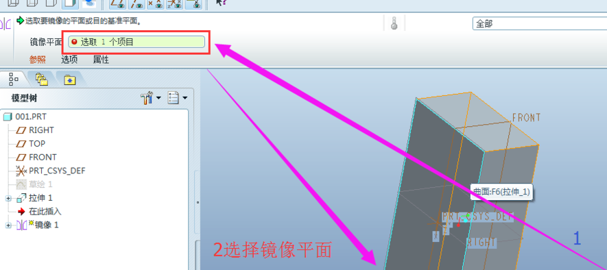 随后,实体编辑按钮及处于可操作状态。例如,我们可以对刚刚建立的实体进行镜像、阵列、合并、修剪等。以【镜像】为例,点击【镜像】按钮,选择要镜像的对象,然后选择【镜像平面】,点击中键确认即可完成镜像。