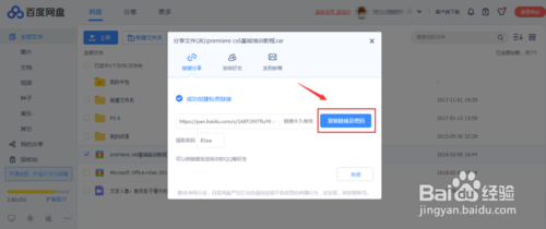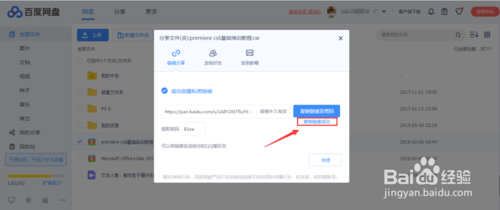 4、这时候页面会显示成功创建私密链接,这里我们再点击复制链接和密码。PS:如果是公开分享,这里就不会显示密码