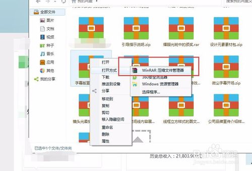 1、首先就是在百度云盘里面找到压缩文件,右键找到并点击“打开方式”-“压缩文件管理器”