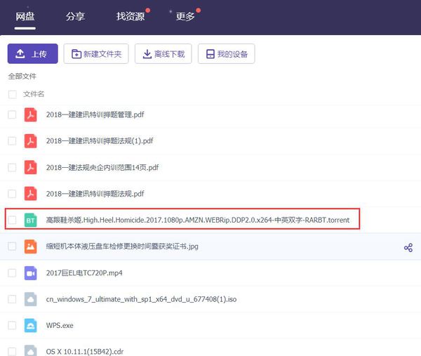 1、打开百度网盘主页面,点击网盘中的BT种子文件;