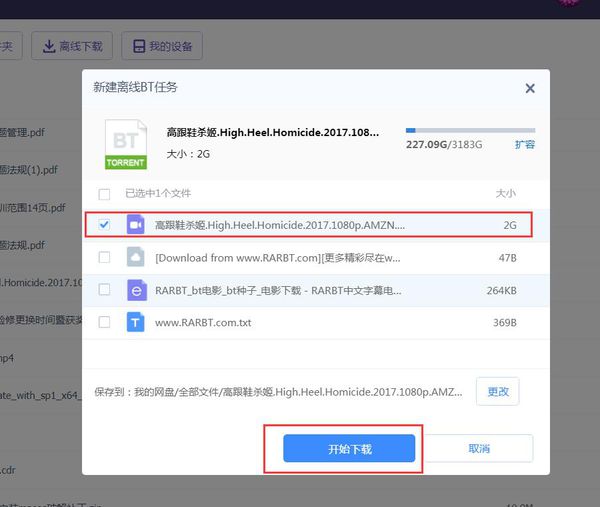 2、在页面弹出中对话框中,选择要下载的文件,点击“开始下载”按钮;