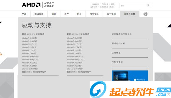 第一步:首先呢,我们需要安装最新版本的A卡驱动,http://www.amd.com/zh-cn,进入这个网址,然后找到驱动与支持这一栏,然后根据你自身的系统自行选择。