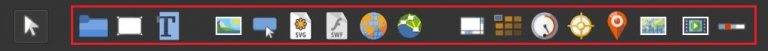 下一行元素。也就是我们制作皮肤的“原料”,框栏里还有一个没有显示是音频,可以在菜单选项的“元素”里选择。