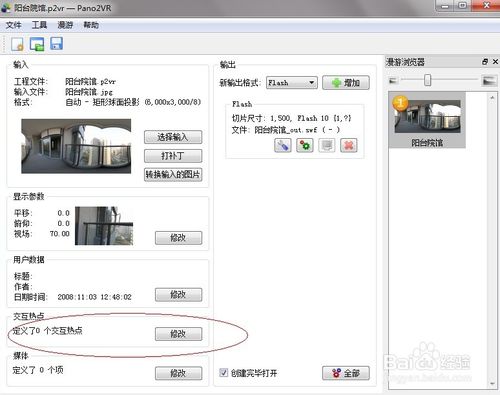 打开Pano2VR软件,导入一张全景图,选择交互热点